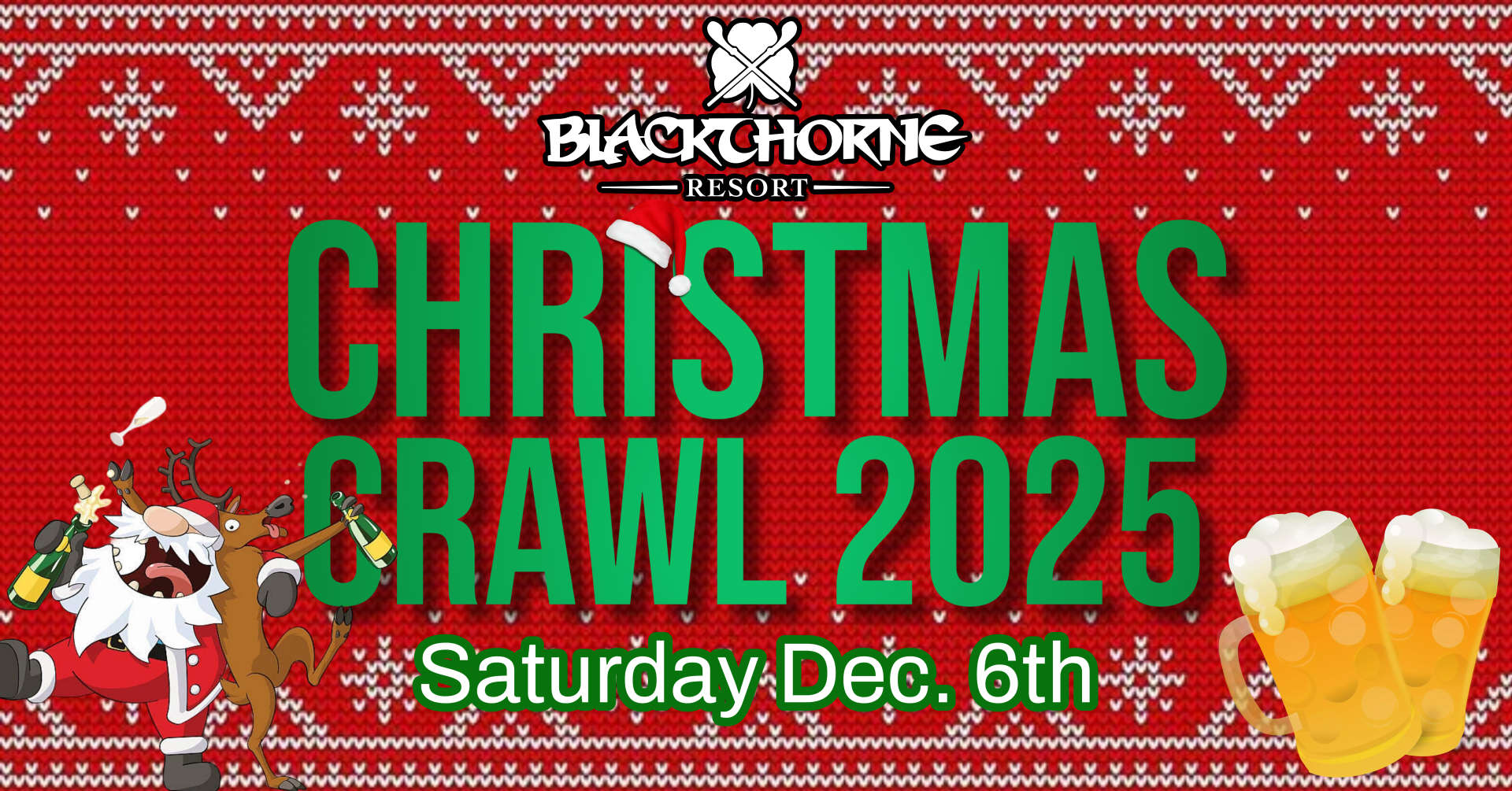 Pregame with a boozy hot chocolate station before we load on the bus that will take us to multiple bars throughout the evening. When we return to Blackthorne Resort there will be live entertainment by the Big Empty, festive drink specials, and prizes awarded for best dressed!